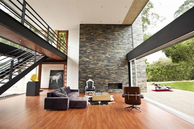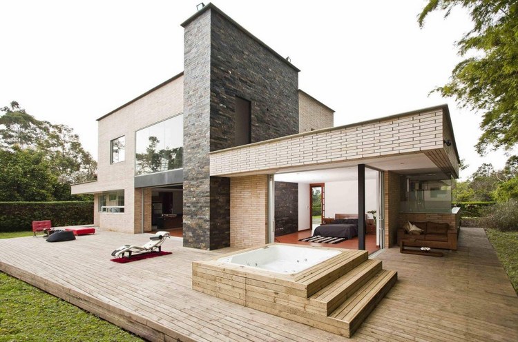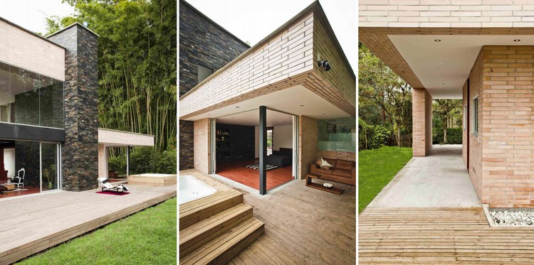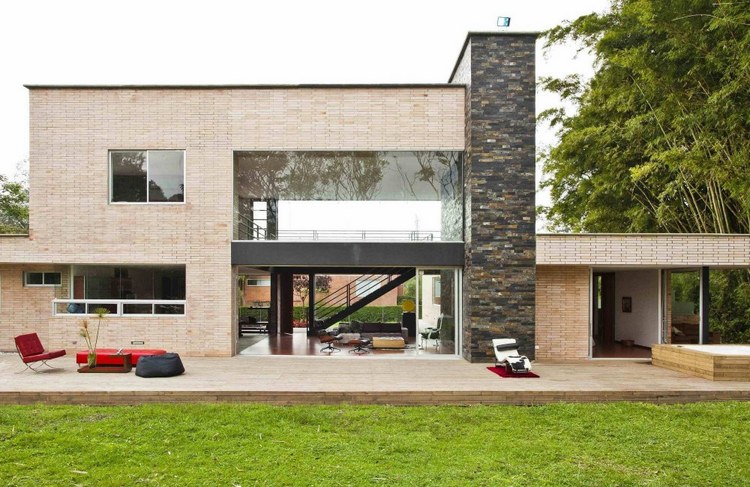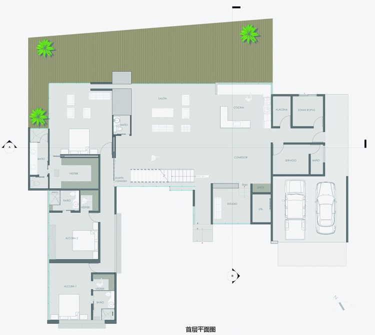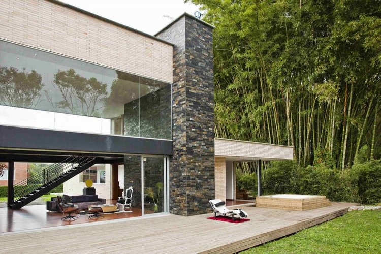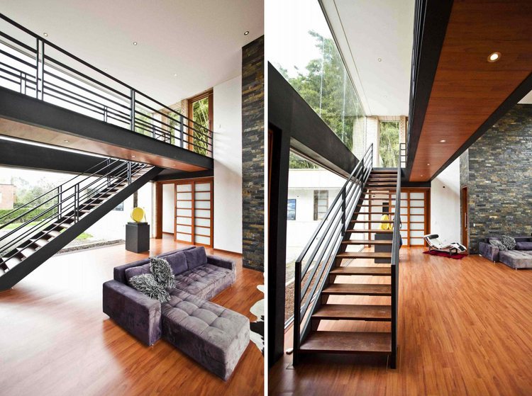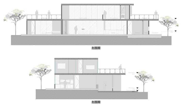 別墅設(shè)計(jì),Olaya別墅(Olaya House)Olaya別墅位于哥倫比亞Medellin市中心大概45分鐘的車程,房屋的首層采用統(tǒng)一樣式的磚塊鋪筑而成,但各功能分區(qū)布局規(guī)整、明確,包括服務(wù)區(qū)、活動(dòng)區(qū)和私人區(qū)。服務(wù)區(qū)域包括車庫(kù)、傭人房、洗衣房和貯藏室。活動(dòng)區(qū)內(nèi)設(shè)有一個(gè)巨大的廚房并與用餐區(qū)和主客廳相對(duì),通過一道甲板式通道便可來到院落。私人區(qū)有三個(gè)我是,每一個(gè)房間都帶有獨(dú)立衛(wèi)生間、浴室和更衣室。活動(dòng)區(qū)與私人區(qū)被一道巨大的黑色磚墻所隔開,不論從室內(nèi)還是室外都可以看到這道墻,同時(shí)墻體也是房屋主結(jié)構(gòu)之一,墻體內(nèi)部設(shè)有一個(gè)公共于是和兩個(gè)獨(dú)立的煙囪,分別服務(wù)于主臥和主客廳的通風(fēng)。經(jīng)過位于一層服務(wù)區(qū)的風(fēng)格化樓梯便可以來到二層:這里簡(jiǎn)單舒適,分為兩個(gè)寬敞的區(qū)域,一個(gè)是書房一個(gè)是主臥,另外還設(shè)有兩個(gè)巨大的露臺(tái)陽(yáng)臺(tái),可以從這里欣賞外面的風(fēng)景。值得一提的是,露臺(tái)與房屋由一座小橋連接。