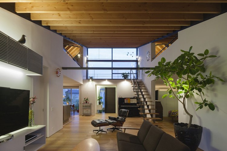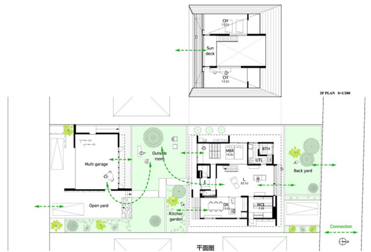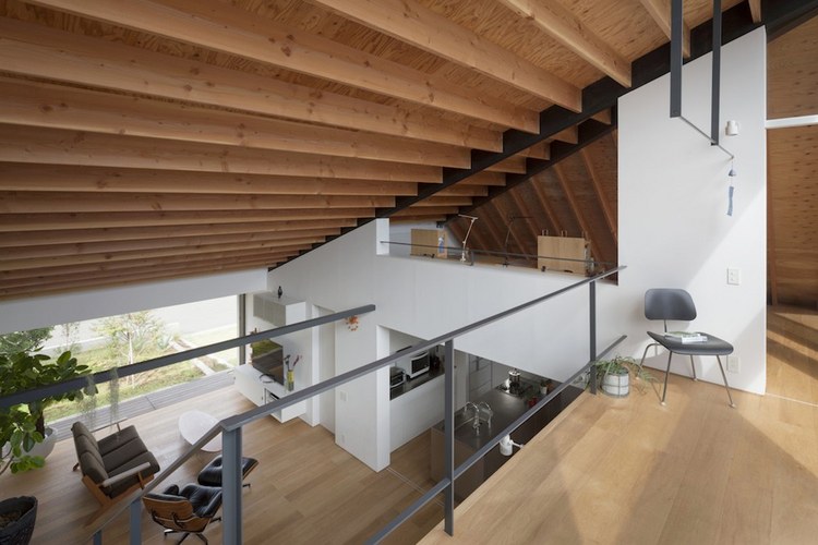 別墅設(shè)計,四坡屋頂別墅別墅位于茨城縣新開發(fā)區(qū)”里山”或半自然林地將要出售的一個地段。客戶要求比較簡單:創(chuàng)建一個私人住宅并設(shè)有兩個車庫。利用這一區(qū)域,設(shè)計團隊提出“寬敞的平房平臺”概念,作為一個開放的空間與周圍的鄰居共享,達到空間與自然的連接。