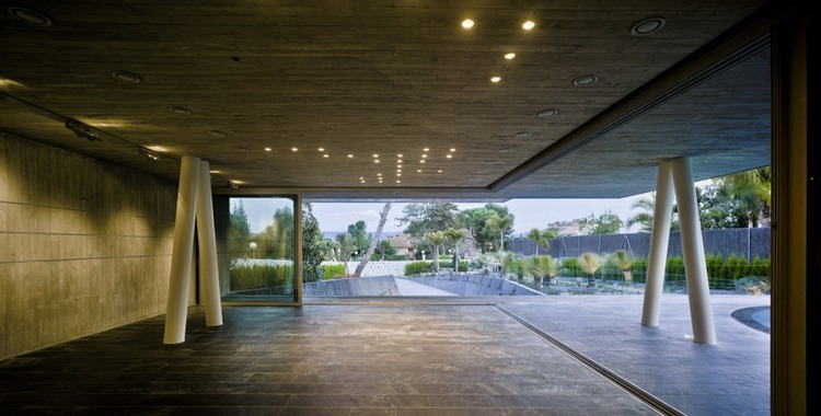 1.舒適性體驗(yàn) 地下室內(nèi)部映照著一定的自然光可以滿足休閑娛樂(lè)所用。趣味從停車庫(kù)開(kāi)始,透過(guò)這里的后擋風(fēng)玻璃窗設(shè)計(jì)可以看見(jiàn)游泳池;由彩色模壓混凝土鋪筑成的人行道加強(qiáng)了房間與室外區(qū)域的聯(lián)系; 2.居住性體驗(yàn) 一層包括一個(gè)C形區(qū)域并向私人開(kāi)放向空間敞開(kāi)。巨大的懸臂頂棚將內(nèi)外區(qū)域連接起來(lái),家人可以在這里聽(tīng)音樂(lè)、看展覽。