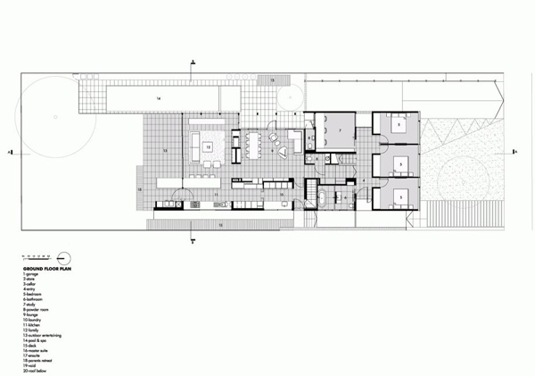 設(shè)計(jì)師以精簡(jiǎn)的表達(dá)方式,完成了一件戲劇性的別墅建筑,該設(shè)計(jì)演繹出空間的靈活性,又不失去家庭生活的實(shí)用。 這個(gè)實(shí)用又美觀的住宅外觀平淡無奇,作為一個(gè)靈活的家庭生活空間,室內(nèi)和外部環(huán)境的界線用模糊的手法處理,使每個(gè)生活空間都和戶外相結(jié)合。 該建筑的精巧細(xì)致,大膽的直線形式,和植物相映生輝。房子的一側(cè)入口實(shí)用舊鐵路枕木做成,在地面形成一個(gè)有趣的路徑。
