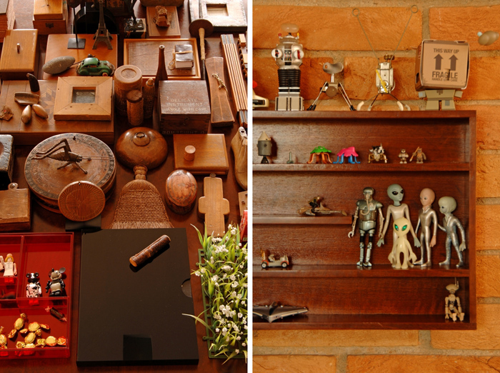 巴西建筑大師Marcio Kogan的家充滿了玩味與豐富元素,也許這和他原來是位電影制片人有關(guān)系。他的家在一座建筑的12樓——那座建筑是他1980年首次參加建筑比賽獲獎的一個作品。這個家的視野是窗外城市的天空,也是屋內(nèi)琳瑯滿目的擺件:無論是鋼琴上還是柜子上,擺滿了手稿、家具模型、旅行紀念品或是書籍。Kogan記得其中每件東西的來源和故事,他的家是他自己的記憶博物館。