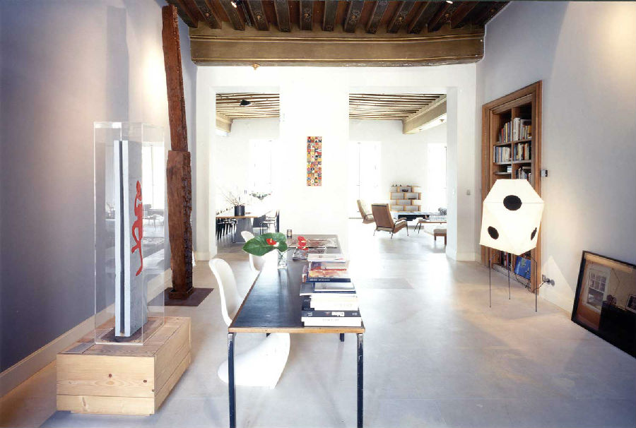一張桌子、一個窗戶、一個皇家廣場,雕像和馬。在巴黎孚日廣場附近,F(xiàn)uksas建筑師夫婦住在這里。設(shè)計大師Jean Prouvé的原版家具、或是20世紀的不少經(jīng)典設(shè)計,還有一些民間工藝品在這個寬闊的空間內(nèi)協(xié)調(diào)一致。在入口處還有一個戰(zhàn)士雕像等待著這對建筑師遠途出差回來的時刻。