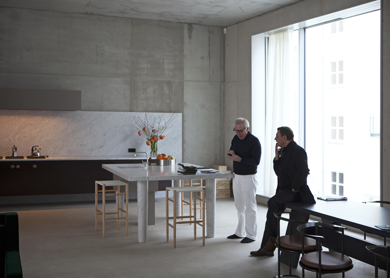 自從1997年接手了柏林“新博物館”的設(shè)計任務(wù)后,這位英國建筑大師就一直居住在柏林。在一座三層小房內(nèi),工作室、家都包括在內(nèi),Chipperfeld甚至還設(shè)計了一間小餐廳,讓附近的柏林人過來消遣。整個建筑物外觀是混凝土結(jié)構(gòu),赤裸的墻壁也印證著這位建筑師向來對干凈立面的偏好。從大扇的窗戶可以俯瞰街道和庭院,而室內(nèi)放置的上世紀五六十年代的意大利經(jīng)典家具則定義著這個建筑師家的自我放松。