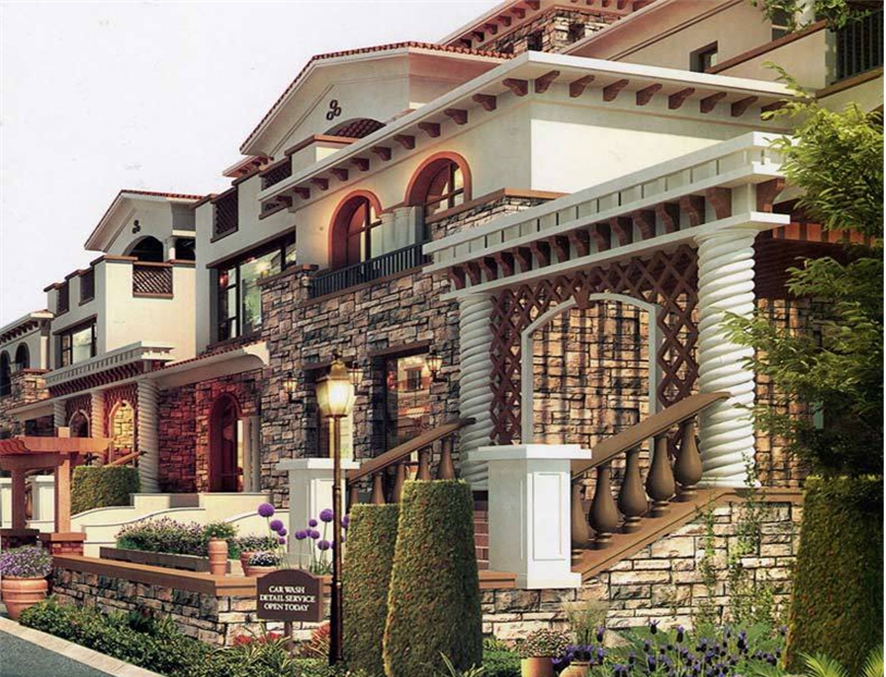 奉賢景源名墅別墅裝修設計: 景源名墅位于奉賢南橋城西生活核心區,14萬平方米的加州國際社區。規劃建筑為240-380平方米水澗雙拼別墅、高檔公寓。別墅4-6聯產品為主,帶少量雙拼。以“加州風情”為設計藍本,石材立面、陽光下沉庭院、挑高客廳、層層退臺的超大休閑露臺使產品營造出濃郁的南加州風情。